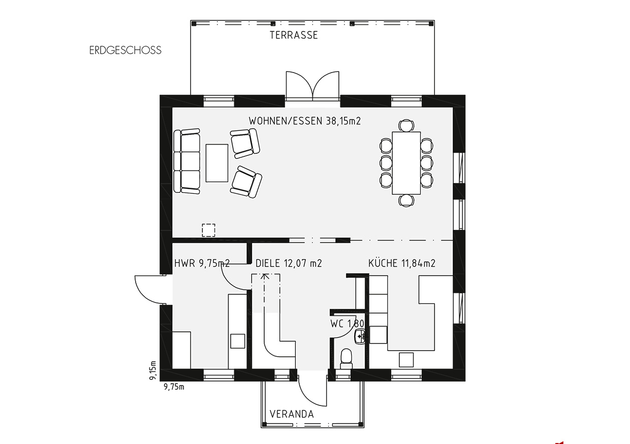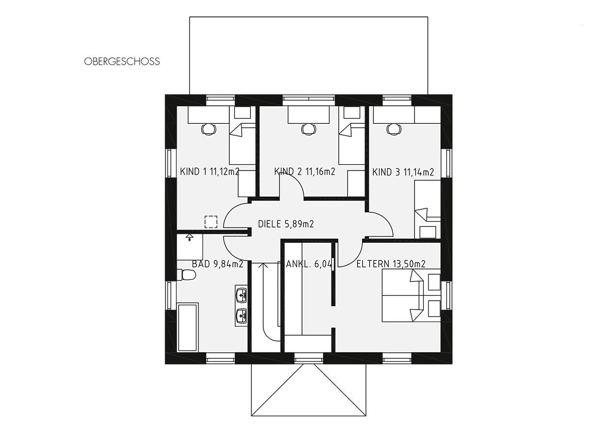 Bei unserem Haus „Daniel“ handelt es sich um eine Stadtvilla in schwedischem Gewand: Ein kompaktes Haus für kleinere Grundstücke, das dennoch über reichlich Wohnraum verfügt. Vom einladenden Eingangsbereich gelangt man in den Koch/Ess-/Wohnzimmerbereich, der den größten Teil des Erdgeschosses ausmacht. Durch die L-Form geht die Küche direkt über in das Esszimmer, während das Wohnzimmer etwas ungestörter liegt. Bei Bedarf kann vom Wohnzimmer ein Arbeitszimmer abgeteilt werden. Auf der Gartenseite liegt eine großzügig geschnittene überdachte Terrasse. Das Obergeschoss verfügt über 3 Kinderzimmer und ein großes Bad für die ganze Familie. Die Ankleide im Anschluss an das Elternschlafzimmer verfügt über ein eigenes Fenster und damit Tageslichteinfall.